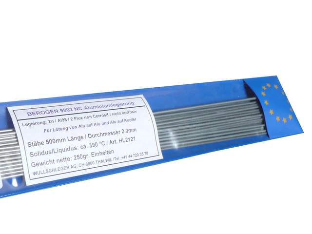 Für Weichlotverbindungen von Alu-Legierungen mit niedriger Arbeitstemperatur von 385° Celsius. Geeignet auch für Verbindungen von Alu auf Kupferlegierungen (Wärmetauscher/Kühlerbau)